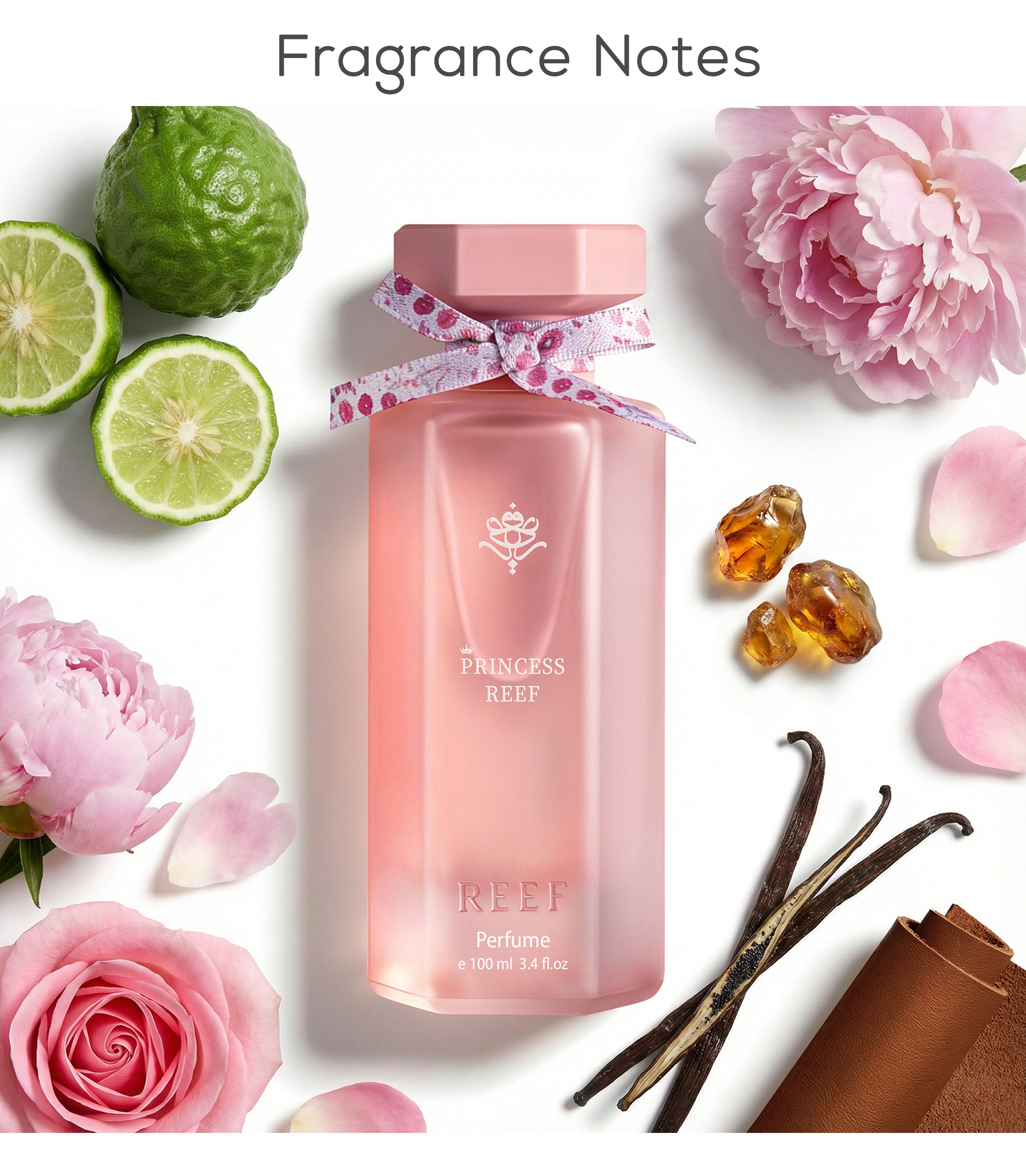 In a world where details are crafted with sheer delicacy, Hamid Kashani composed PRINCESS REEF to be a hymn celebrating femininity at its peak. Confident, radiant, and instinctively elegant. The tale begins with a vibrant burst of Mandarin, illuminating the Princess’s presence with a sparkling, modern energy. As time settles, the heart unveils the enchantment of Damascena Rose, lending a velvety character to a woman who wears confidence as the hallmark of her eternal elegance. To conclude this sensory journey, the strength of Leather emerges alongside the warmth of Amber, creating a balance that unites boldness with calm allure. PRINCESS REEF is more than a fragrance; it is the ultimate convergence of tender emotions and a commanding presence.